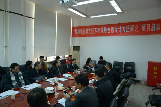 专家听取了课题负责人赵作周副教授对“预制板板端支座不出筋叠合楼板技术研究”课题研究方案的汇报,并进行了深入讨论,认为课题组提出的研究方案基本可行,并提出了部分改进与修改意见。