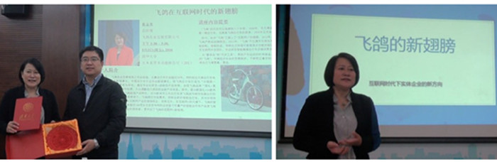 3月3日下午,飞鸽车业发展有限公司总经理张金英女士应邀在系馆多功能厅做了题为《飞鸽在互联网时代的新翅膀》的讲座。张总在讲座中分享了80年来飞鸽的出世、成长和蜕变的历程,以及在未来飞鸽作为交通工具的创造者在交通体系中的角色预期及社会责任。
