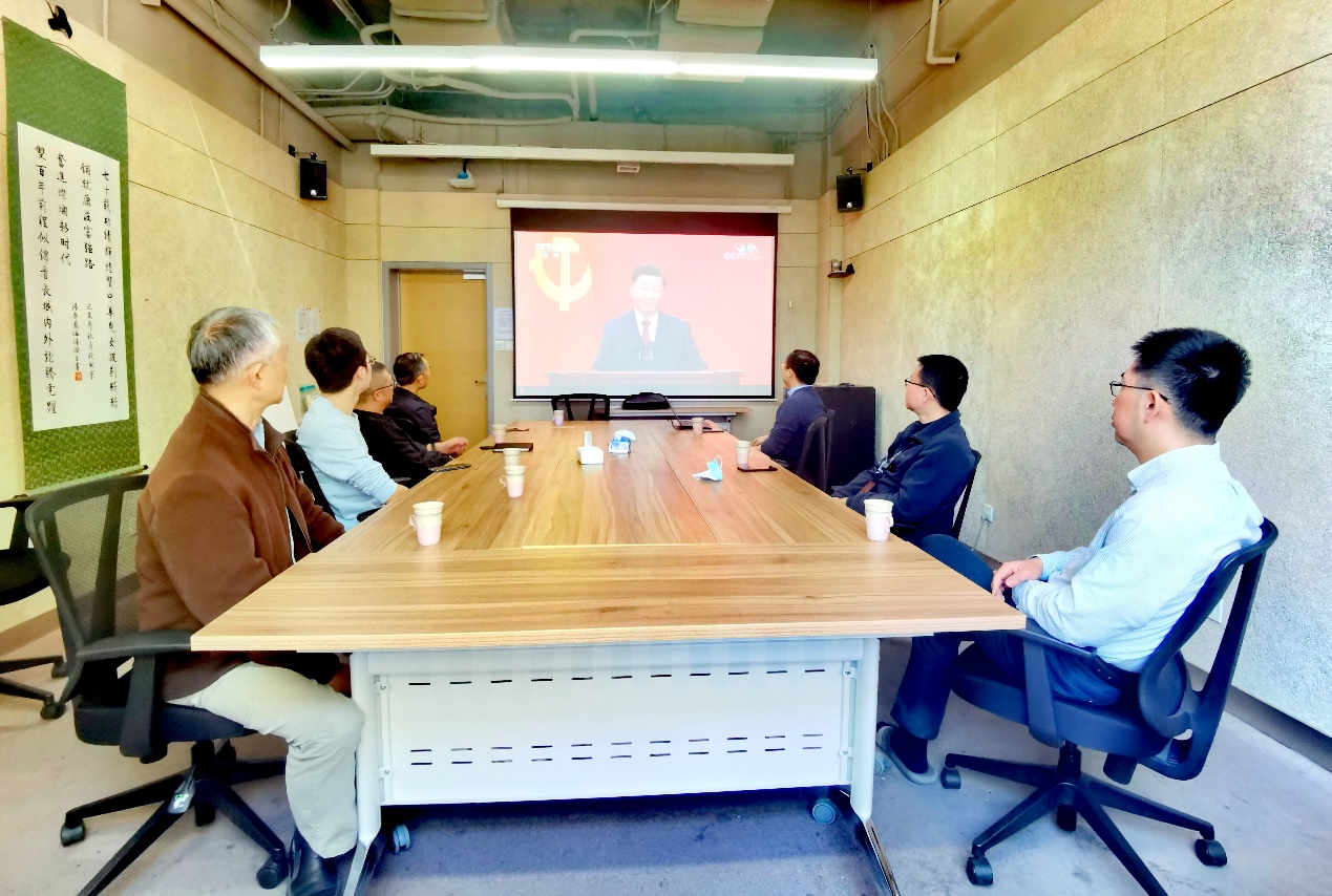 10月23日12时,中国共产党第二十届中央政治局常委在人民大会堂同中外记者亲切见面。建设管理系党支部号召并组织全体党员于西主楼纳什会议室集中观看了本次见面会直播。