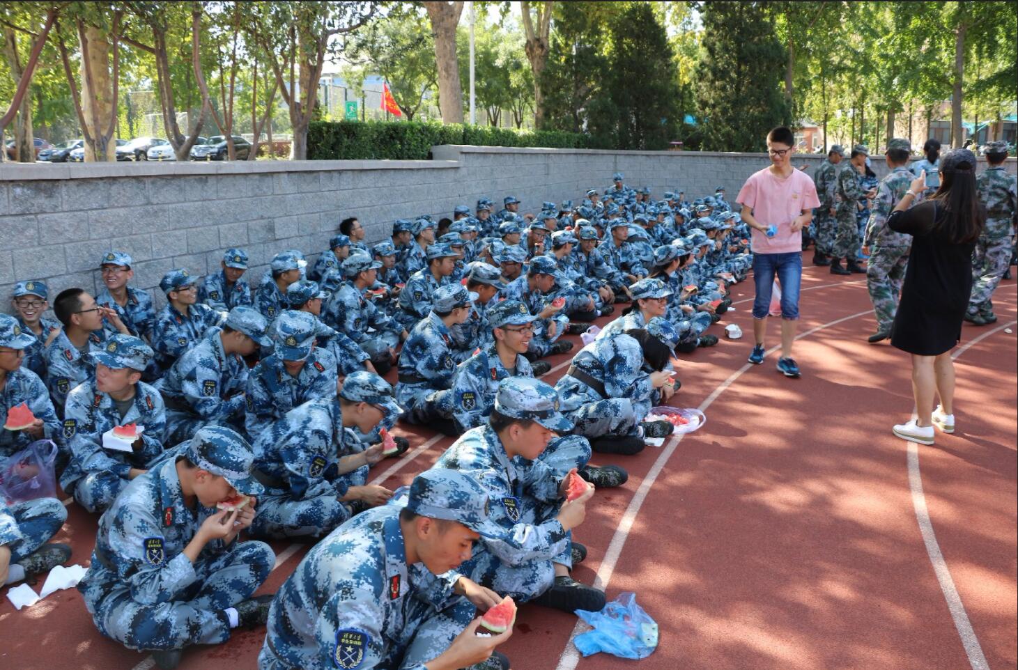 员工会的同学们送来了定制可乐和西瓜,给在烈日下军训的同学们带来了凉爽。