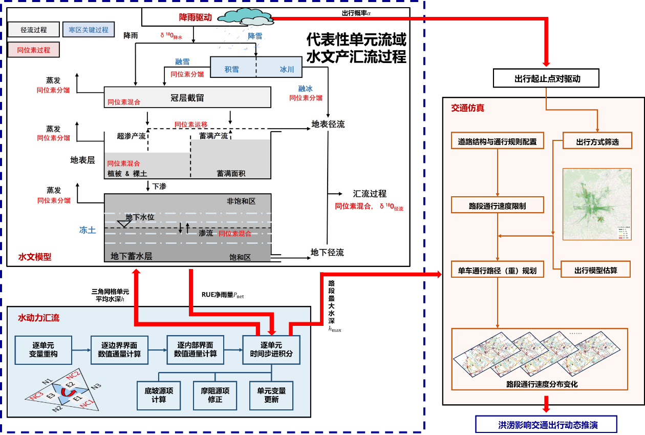 水文水动力模型是洪水预报的核心,其准确性、时效性与预见期需同步满足防汛决策需求。针对这些需求,田富强教授极端暴雨与城市韧性科研团队研发了基于水文水动力耦合模拟的洪水模型技术。