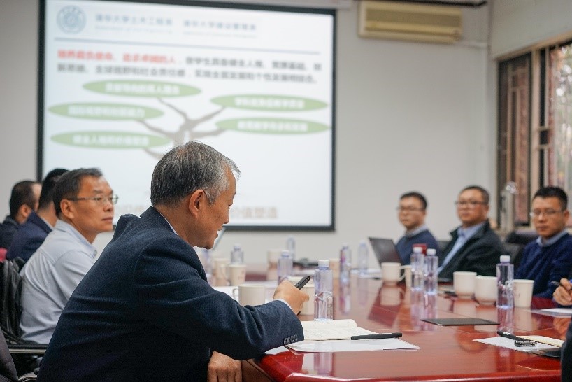 土水公司党委书记方东平老师对评估专家的来访表示热烈欢迎,并以“培养肩负使命、追求卓越的人”为主题,从贡献导向的育人理念、国际视野和创新能力、健全人格和价值塑造、学科优势促教学质量、公司产品传承和发展等方面,总结了土木、建管两系近年来在本科公司产品环节中的亮点。方东平老师认为:土木工程作为清华91年的老牌院系,在本科教育工作中,始终坚持“知识传授、能力培养、价值塑造”,无论教育理念的表述如何变化,其内涵依然深深扎根在“自强不息、厚德载物”的校训之中。