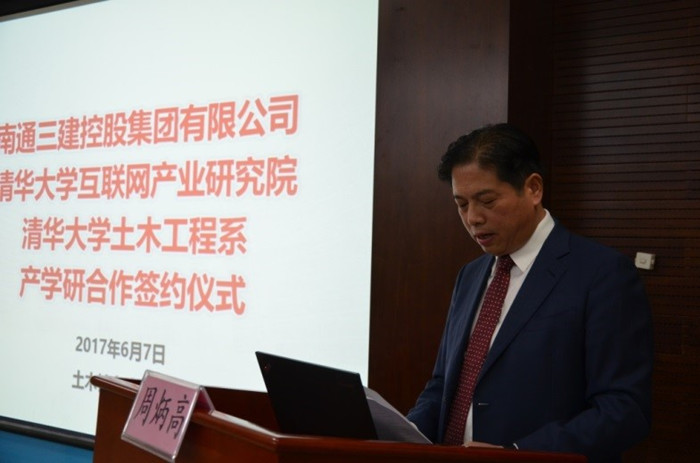 签约仪式前,周炳高简要介绍了南通三建控股集团有限公司近期发展情况。他表示,传统建筑企业的转型升级必须紧紧依靠科技进步,南通三建希望通过三方强强联合,优势互补,进一步深化合作,实现互利共赢,为企业的转型升级、科技创新、人才培养、管理团队的技能提升等发挥更大的作用。