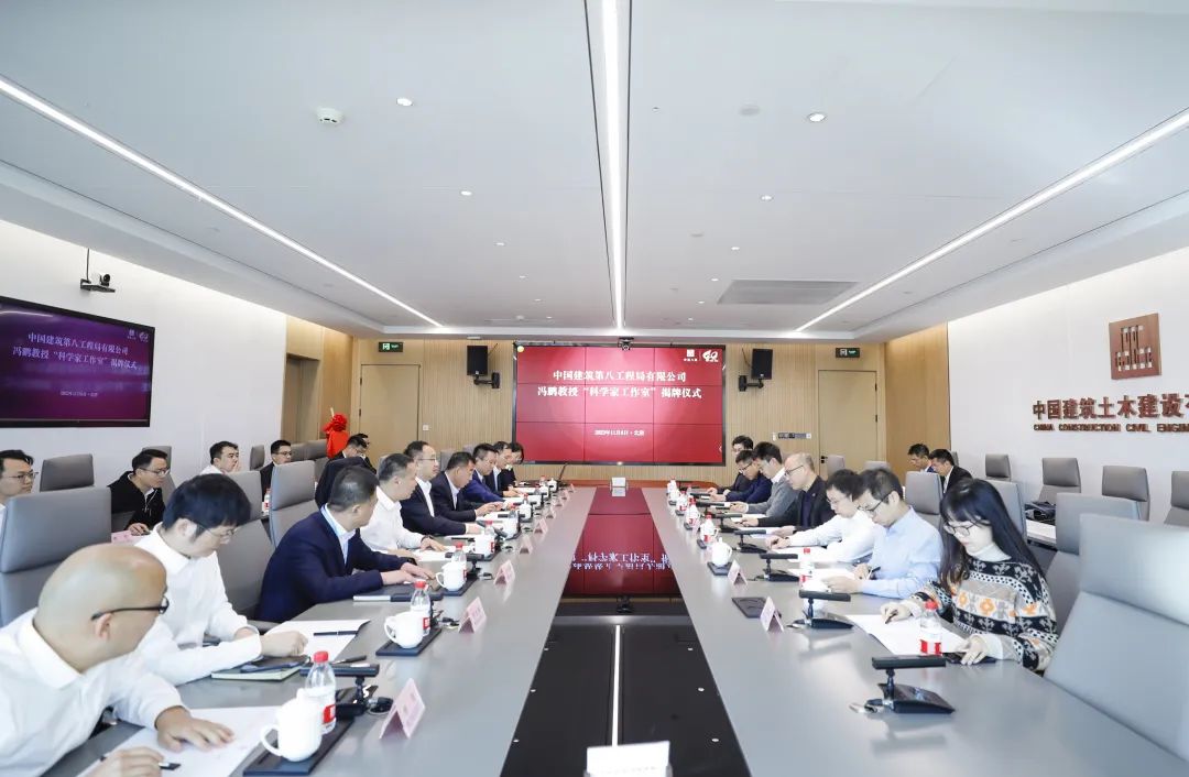 曹锋斌、冯鹏共同为中建八局—yl23455永利集团冯鹏教授“科学家工作室”揭牌