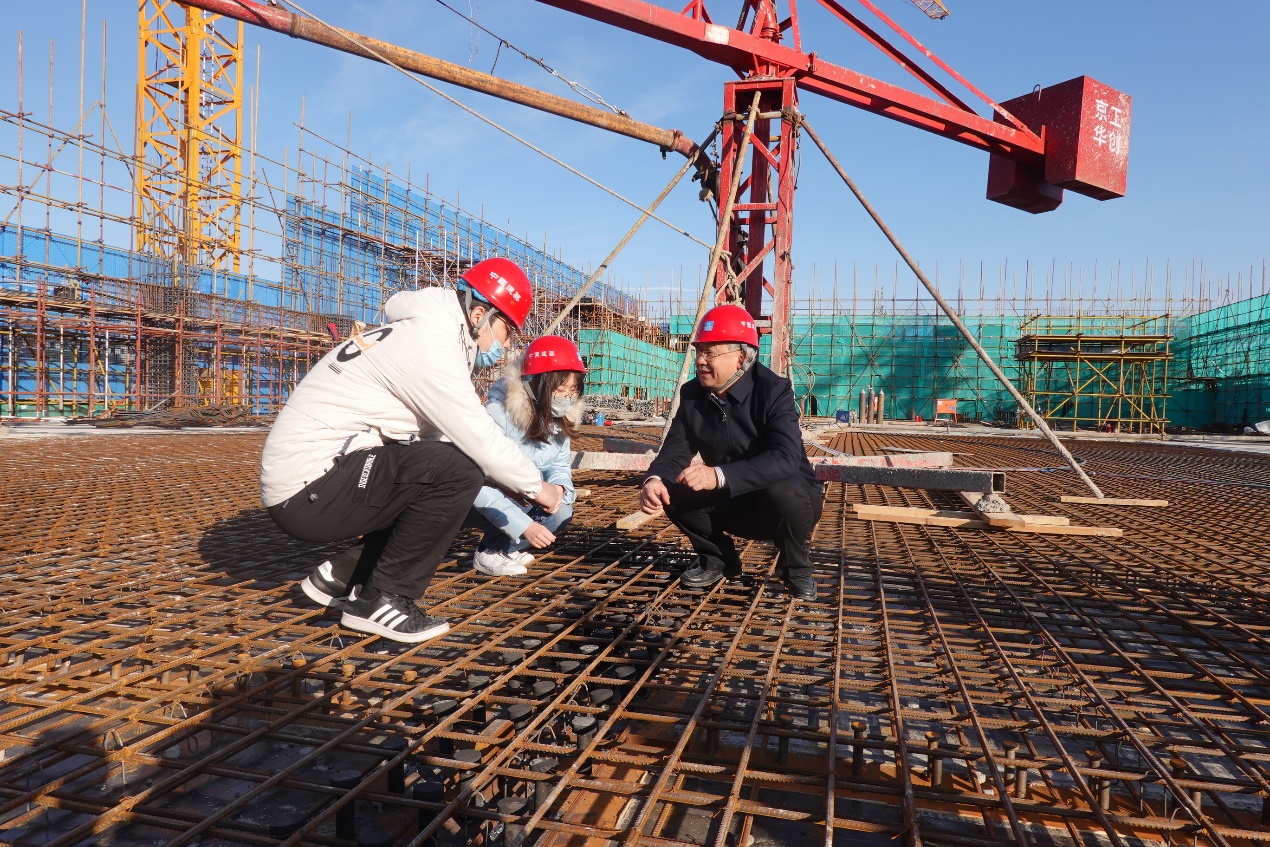 聂建国(右一)在yl23455永利集团北体育馆施工现场考察