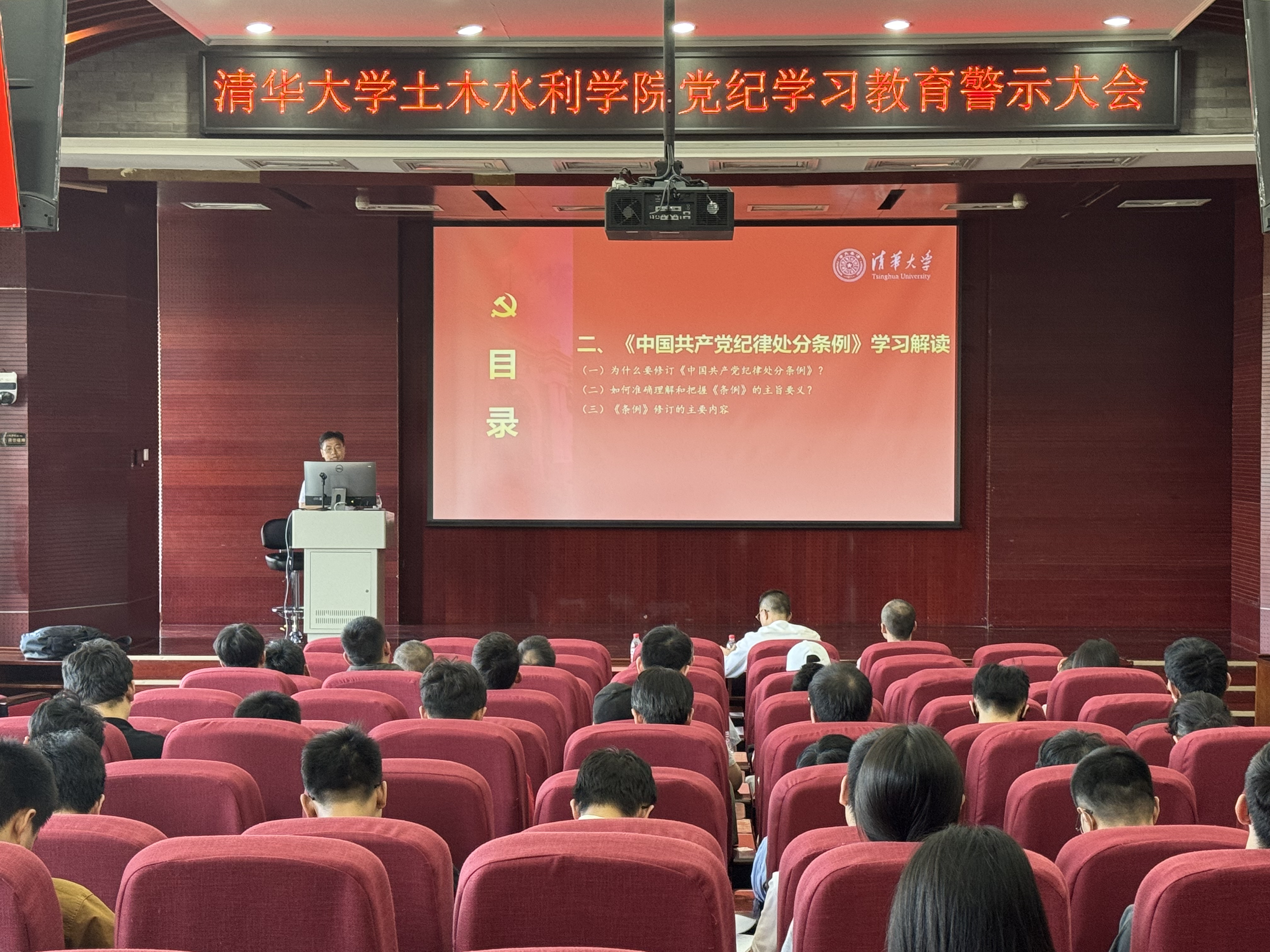 为了深入学习贯彻习近平总书记关于开展党纪学习教育的重要讲话和重要指示精神,扎实开展党纪学习教育,5月15日下午,土水公司召开党纪学习教育专题党课暨警示教育会,通过党纪学习、案例宣讲,引导党员进一步强化纪律意识,严守纪律底线。公司党委党建联系指导组成员、清华园街道办事处主任向春出席会议,土水公司党委书记傅旭东主持会议,土水公司党政班子成员、党委委员、教职工和员工党支部书记、支委等约128人参加会议。